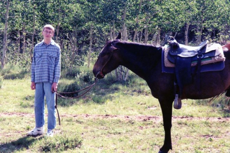 At DisneylandEw! Ew! Dead bird on windshield on our way to Yellowstone!Horseback riding near YellowstoneBridal Veil Falls, TellurideDevil’s Tower, WyomingWith dad in D.C. Near Ouray, ColoradoWilderness hiking near Silverthorne, ColoradoMont St Michel, France, on his French class tripDaniel’s last horse ride, summer 1998, near Fairplay, Colorado