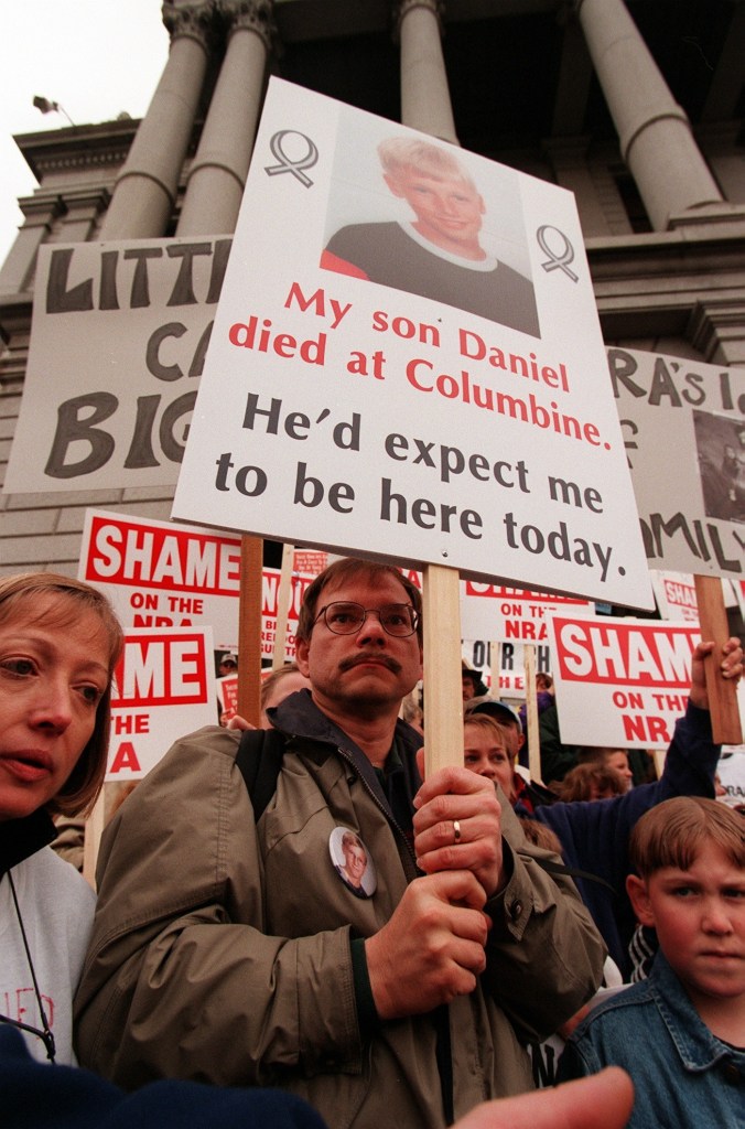 I was rather quiet after the massacre. I hardly spoke at all to the media, except for a brief radio and newspaper interview. A week after the massacre a friend asked if I was going to the protest against the NRA’s national convention. What? I hadn’t heard of this great irony—that the NRA was holding its national convention in, of all places, Denver—just ten days after the Columbine massacre.